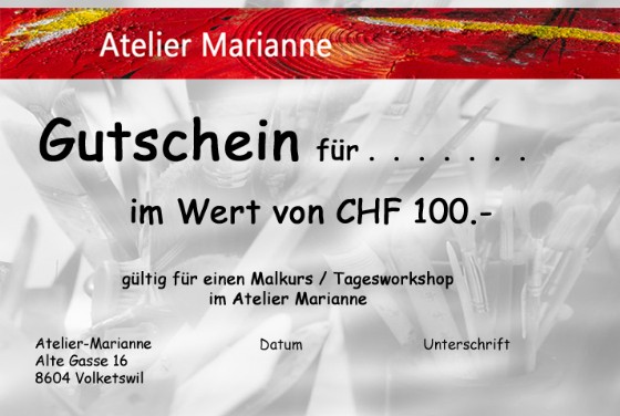 Geschenkgutscheine - Atelier Marianne Blumer Künstlerin aus Zürich Acrylbilder Kunst Acryl Malkurse Malschule Bilder Abstrakt